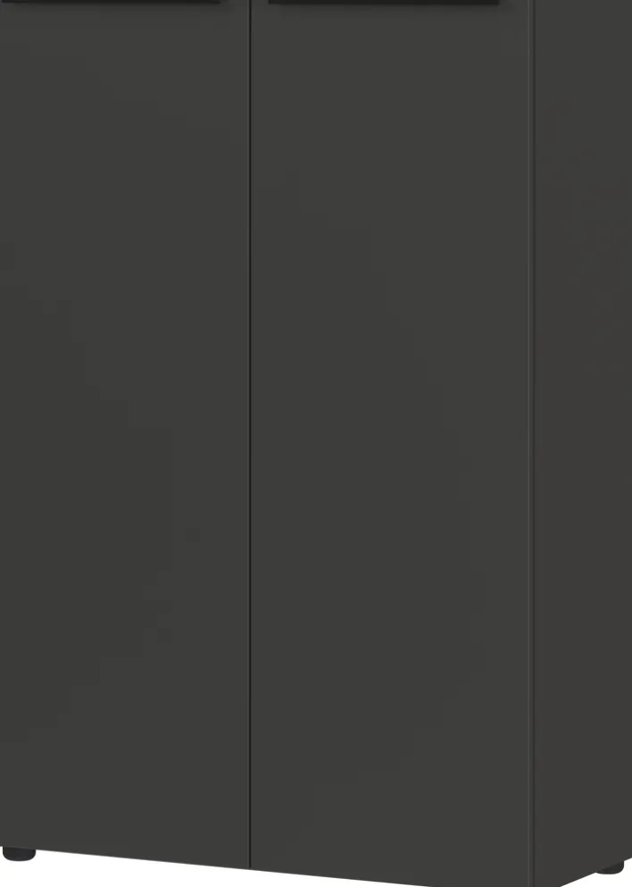 Der Aktenschrank LORENZ in dezentem Graphit hat die Abmessungen 81x120x40 cm. Er bietet reichlich Stauraum für Unterlagen, Ordner oder großformatige Bücher.