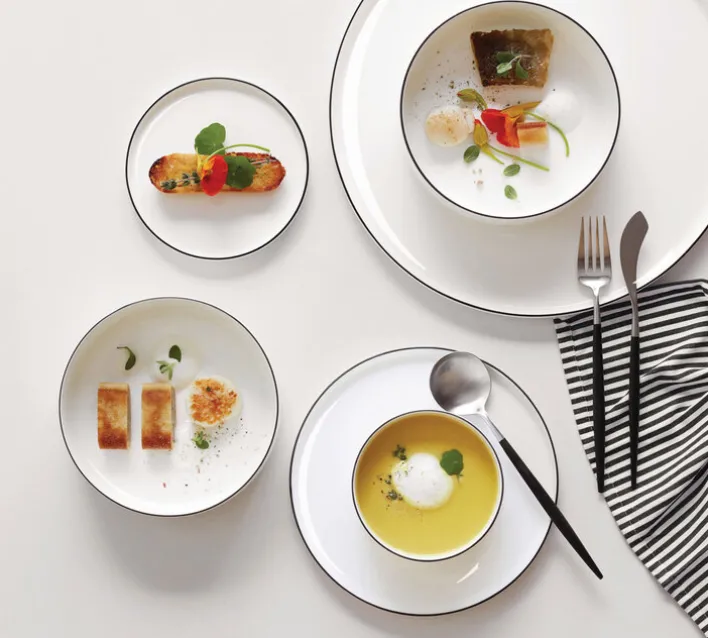 Das ASA Set aus der Serie OCO umfasst 6 Brotteller aus hochwertiger Bone China Keramik. Die glänzend weiße Oberfläche wird von Hand mit einer zarten schwarzen Linie bemalt. Das Design passt zum gleichnamigen Service, die Teller können aber auch mit neutral weißem Geschirr kombiniert werden. Neben ihrer Funktion als Brotteller eignen sie sich auch zum Servieren von Desserts, Kuchen oder frischem Obst.
