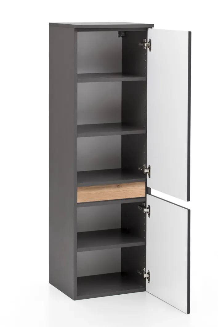 Der praktische Bad-Midischrank BRÜGGE in Grau und Graphit ist optisch und funktional ein Gewinn. Die hochwertige Holznachbildung sorgt für eine lange Lebensdauer.