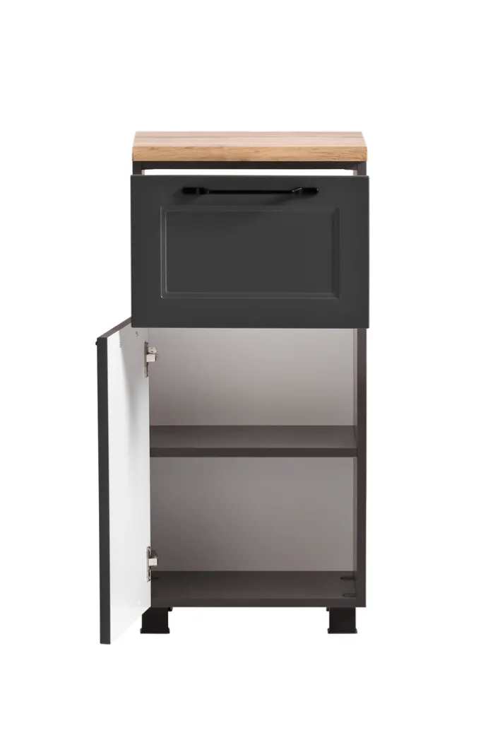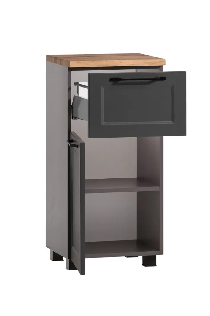 Der attraktive Bad- Unterschrank LÜTTICH in stilvollem Grau mit einer Breite von 40cm vereint mehrere Vorteile in sich. So ist das schöne Möbelstück, das in matt-grauem Look beeindruckt, mit einem Schubkasten, einer Drehtür und einem Einlegeboden ausgestattet. Praktischerweise verfügt die integrierte Schublade über eine Soft-Close-Funktion. Dadurch wird der Bad- Unterschrank LÜTTICH grau 40cm zusätzlich aufgewertet.