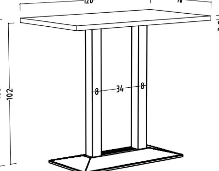 Das schwarze Säulengestell aus Metall sorgt für Stabilität und einen festen Stand. Die matte Optik des Gestells harmoniert perfekt mit der hellen Tischplatte und schafft einen ansprechenden Kontrast. Der Tisch ist rechteckig und fügt sich nahtlos in moderne Wohnkonzepte ein. Eine Tischverlängerung ist nicht vorgesehen, was die klare Linienführung des Designs unterstreicht. Dieser Bartisch ist eine stilvolle Ergänzung für jedes Zuhause und eignet sich ideal für den täglichen Gebrauch.