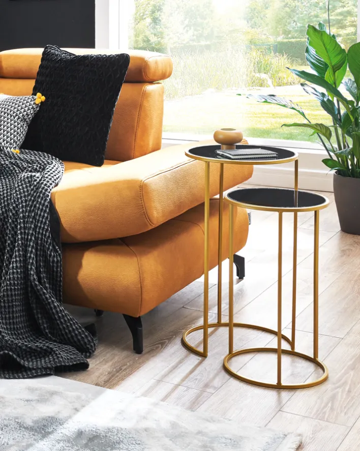 Die beiden Beistelltische sind vielseitige Ablagemöglichkeiten, die sich platzsparend in verschiedene Einrichtungsstilen integrieren lassen. Dabei werden die hochwertigen Möbelstücke zum Mittelpunkt vielseitiger Verwendungen. Zum Beispiel lässt sich auf dem kleinen Tisch eine kleine Zimmerpflanze platzieren, während auf dem großen Exemplar eine Designerlampe oder eine Sammlerfigur alle Blicke auf sich ziehen kann. Wer mag, kann die eleganten Beistelltische auch einfach als Ablage für Zeitungen oder für die Tasse Kaffee zwischendurch verwenden.