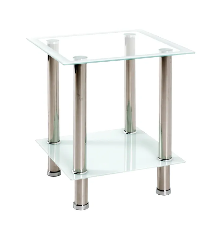 Der 40 x 40 cm große Beistelltisch in der Farbkombination Edelstahl / Weiß ist ein klassisch eleganter Blickfang für verschiedene Wohnräume. Zusätzlich bietet seine quadratische Tischplatte ausreichend Platz für Smartphone, Lesestoff oder Dekorationen.
