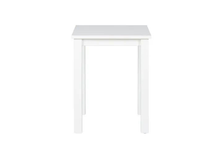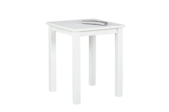 Der weiße Beistelltisch HOLGER hat mit den Maßen 45 Zentimeter Breite, 55 Zentimeter Höhe und 45 Zentimeter Tiefe sowohl im Wohnzimmer als auch im Gästezimmer Platz. Das Vierfußgestell garantiert eine gute Standsicherheit.