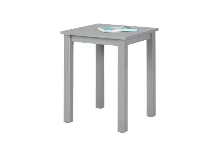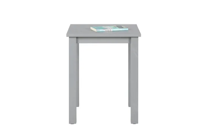 Der rechteckige Beistelltisch mit der zeitlosen grauen Lackierung besteht aus massivem Kiefernholz. So harmoniert er mit sämtlichen farblich neutral gehaltenen Einrichtungen in modern gestalteten Landhäusern und hat auf seinen vier Füßen einen stabilen Stand. Seine unaufdringliche Optik erlaubt außerdem Kombinationsmöglichkeit mit farbenfrohen Tischdecken, Wohnaccessoires und Blumen.