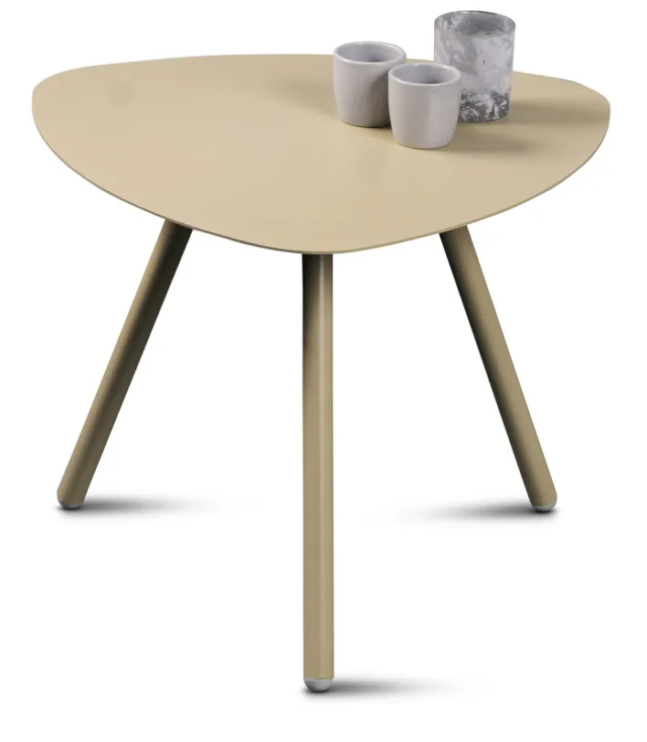 Das Dreifußgestell des Tisches verleiht ihm Stabilität und einen modernen Touch. Die Tischplatte hat eine organische, abgerundete Form, die dem Tisch eine weiche und einladende Ausstrahlung verleiht. Mit einem Gewicht von 6,85 kg ist der Tisch leicht zu bewegen und flexibel einsetzbar. Dieser Beistelltisch ist eine praktische Ergänzung für jedes Zuhause, sei es im Wohnzimmer, Schlafzimmer oder Büro, und bietet eine stilvolle Ablagefläche für Bücher, Pflanzen oder Dekorationsgegenstände.