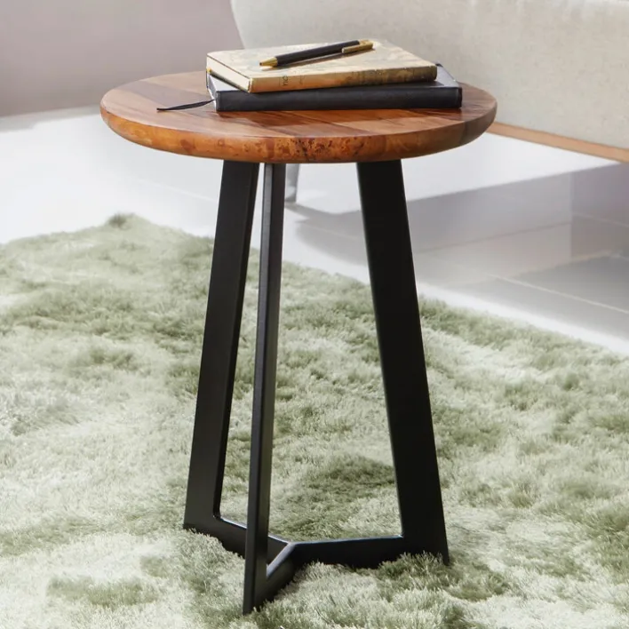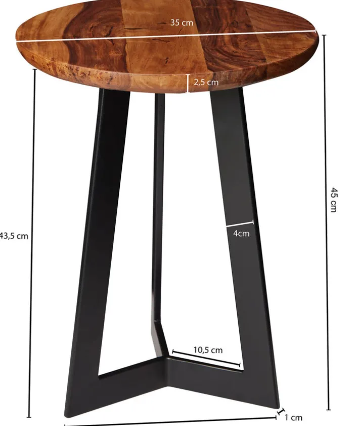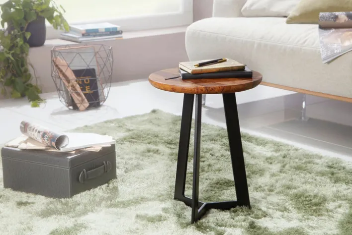 Abgerundet wird die wertige und ausgesprochen natürliche Tischplatte durch ein sternenförmiges Gestell aus Eisen. Um es weniger anfällig gegen Korrosion werden zu lassen, ist das Eisengestell mit einer hochwertigen Pulverbeschichtung versehen und hat ein mattes Design. Der Beistelltisch eignet sich insbesondere für Wohnzimmer.