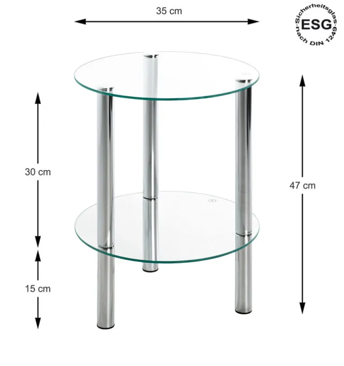 Drei stabile Stahlrohre in hochglänzender Gestaltung bilden das Gestell. Aus klarem Sicherheitsglas entstehen die Tischplatte sowie der untere zusätzliche Boden. Die runde Formgebung findet sich in allen Elementen wieder und führt zu einer ausgewogenen Optik voller Harmonie. Deshalb integriert sich der Beistelltisch leicht in unterschiedliche Wohnraumkonzepte. Viele weitere Möbel sowie passende Accessoires in abgestimmten Farbtönen für einen modernen oder klassischen Einrichtungsstil bieten wir Ihnen in unserem porta! Online Shop an.