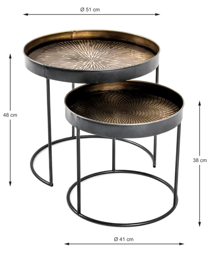Setartikel: jaAnzahl Teile im Set: 2 Stk.Höhe Setartikel 1: 38 cmSetartikel-Inhalt 1: BeistelltischAnzahl Setartikel-Inhalt 1: 1 Höhe Setartikel 2: 48 cmSetartikel-Inhalt 2: BeistelltischAnzahl Setartikel-Inhalt 2: 1 Durchmesser Setartikel 1: 41 cmDurchmesser Setartikel 2: 51 cm
