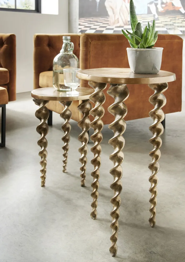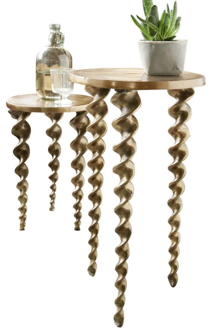 ZILO ist ein Beistelltisch der etwas anderen Art. Seine elegant geformten Beine mit den originellen Korkenzieher-Windungen fallen auf den ersten Blick ins Auge. Oben etwas breiter und nach unten hin schmal zulaufend verleihen sie dem 61 cm hohen Tischchen eine ganz besondere Grazie.