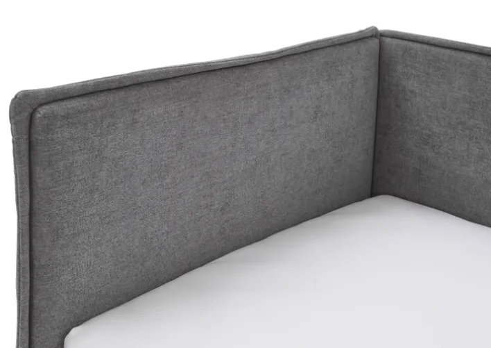 Das Bett FUN, graufarbig mit einer Liegefläche von 90 x 200 cm, besteht aus hochwertigem Polyester. Die braunfarbigen Füße sind aus Eichenholz gefertigt. Das Kinder- bzw. Jugendbett lässt sich aufgrund der Seitenhöhe von 42 cm schnell in ein Sofa umfunktionieren.