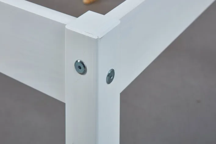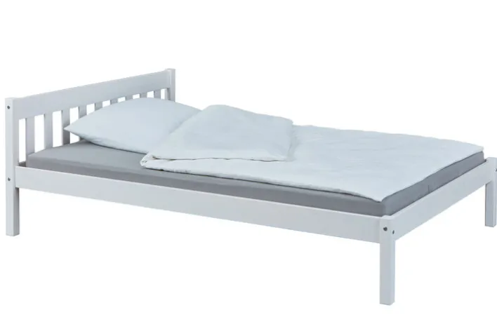 Das schlichte und in seiner Schnörkellosigkeit dennoch elegante Design erlaubt es, das Bett LAURI in unterschiedliche Einrichtungsstile zu integrieren. Insbesondere mit einer aus Holz gefertigten Einrichtung oder mit Böden oder Wänden aus Holz harmoniert dieses Bettmodell besonders gut. Der Rahmen aus massivem Kiefernholz ist in zeitlosem Weiß lackiert. Durch ein klassisches Sprossendesign des Kopfteils wirkt dieses Bettmodell weniger raumgreifend als manch andere Betten. Das Bett LAURI ist mit bis zu 100 kg Gewicht belastbar.