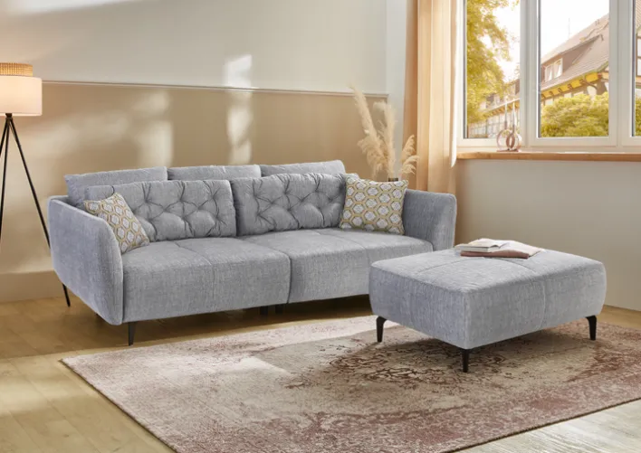 Das Bigsofa CHASE in Grau ist eine gemütliche Sitzgelegenheit i Chesterfield-Look für modern und klassisch eingerichtete Wohnzimmer. Er bietet Platz für die ganze Familie und ist zum Sitzen und Entspannen gleichermaßen geeignet.