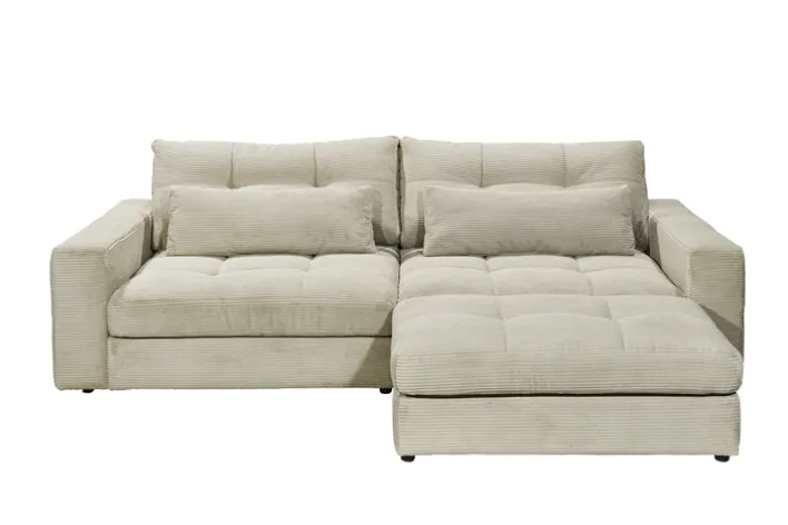 Das Bigsofa aus der Serie COOPER bietet mit seinen großzügigen Maßen von 265 cm Breite, 94 cm Höhe und 122 cm Tiefe viel Platz für entspannte Stunden. Der Bezug in einem eleganten Beigeton, genauer gesagt im Farbton Stone, verleiht dem Sofa eine zeitlose und stilvolle Optik. Die Oberfläche aus Cord-Textil sorgt für eine angenehme Haptik und ist aus 92 % Polyester und 8 % Polyamid/Nylon gefertigt, was Langlebigkeit und Pflegeleichtigkeit garantiert.