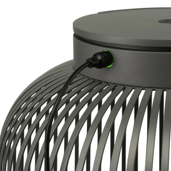 Die LED Tischlampe Laterne LITO besteht aus Aluminium. Das Leichtmetall ist auf den Oberflächen lackiert und dadurch strapazierfähig. Das energieeffiziente LED-Leuchtmittel ist fest in das Gehäuse der Leuchte eingebaut. Zum Laden der batteriebetriebenen Tischlampe ist ein USB-Anschluss vorhanden.