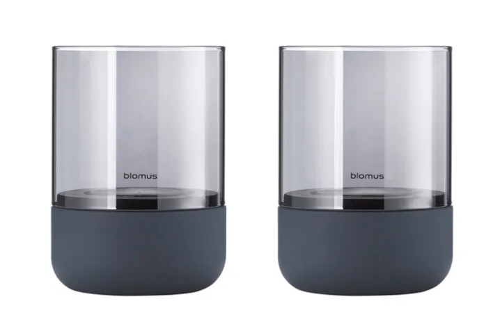 blomus Windlicht CALMA 2er Set 9,5 cm Steel Grau/ Smoke