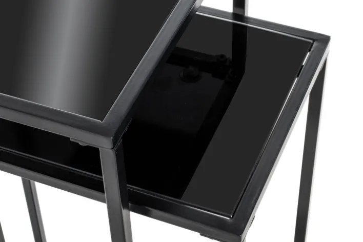 Dieses BLUMENSÄULEN 2er-Set ist schwarzfarbig. Die größere Säule ist 30 cm breit, 70 cm hoch und 30 cm tief. Die kleinere misst 25 x 60 x 25 cm. Das Vierfußgestell der beiden Beistelltische ist aus Stahl mit einer schwarzen Oberflächenbeschichtung. Die Abstellfläche aus lackiertem Sicherheitsglas. Das garantiert eine stabile Abstellfläche mit einer zeitlos eleganten Optik.