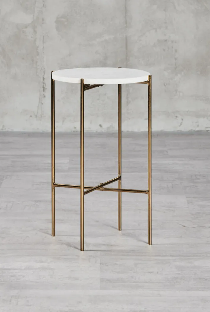 Auf dem modernen Blumenständer ODIANE werden Zimmerpflanzen gekonnt in Szene gesetzt und für den Urban Jungle im eigenen Zuhause verschiedene Höhen geschaffen. Der runde Tisch mit goldfarbigem Fixgestell aus Eisen und den Maßen 29,5 x 50 cm ist mit einer weißen oder grünen Marmorsteinplatte erhältlich.