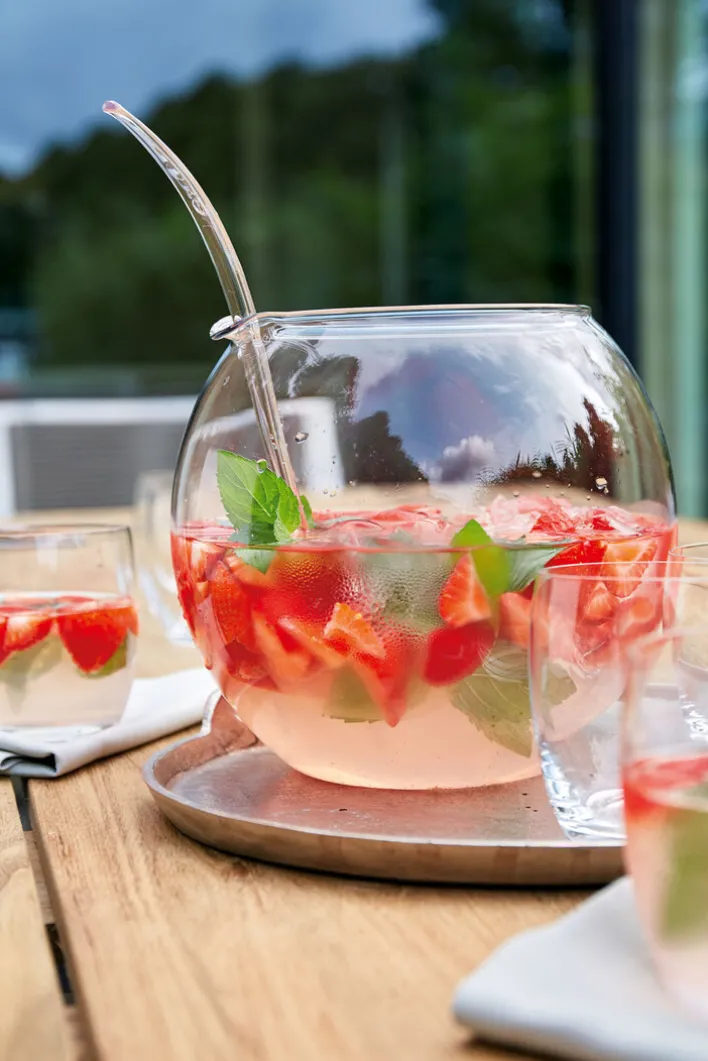 Dieses acht teilige, hitzebeständige Bowle-Set LIBERA darf auf Ihrer nächsten Party nicht fehlen. Erdbeeren, Kirschen, oder andere Früchte – in dem hitzebeständigen Bowle-Krug fühlt sich jede Frucht „Zuhause“. Im Lieferumfang enthalten ist neben dem Bowle-Krug und sechs Bechern auch ein Bowle-Schöpfer. Außerdem ist das Bowle Gefäß mit einer sogenannten Schnaupe versehen, die Ihnen das leichtere und saubere Ausgießen ermöglicht.