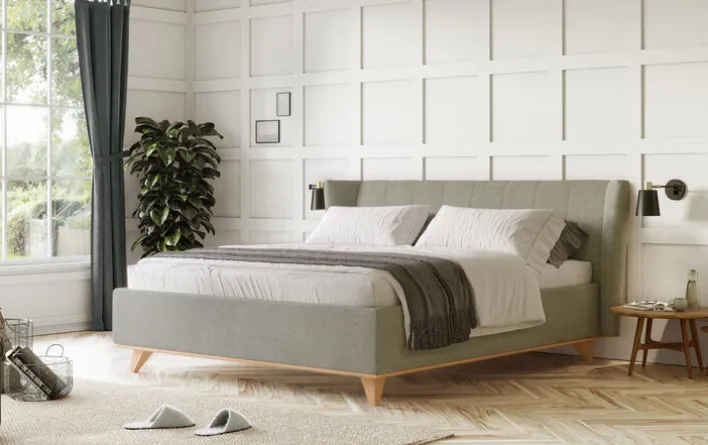 Das BOHOME Polsterbett TOSCANA III benötigt eine Stellfläche von 221 x 111 x 226 cm und überzeugt auf den ersten Blick mit einem stylischen Look. Sein gepolstertes Gestell mit hohem Kopfgestell mit Ohren kombiniert das Bett mit robusten Füßen aus massivem Eichenholz. Im Bettgestell befinden sich zwei fest integrierte Lattenroste, unter denen Bettkästen für Stauraum sorgen. Die 7-Zonen-Taschenfederkernmatratzen in den Härtegraden 2 und 3 verleihen dem Polsterbett einen traumhaften Liegekomfort.