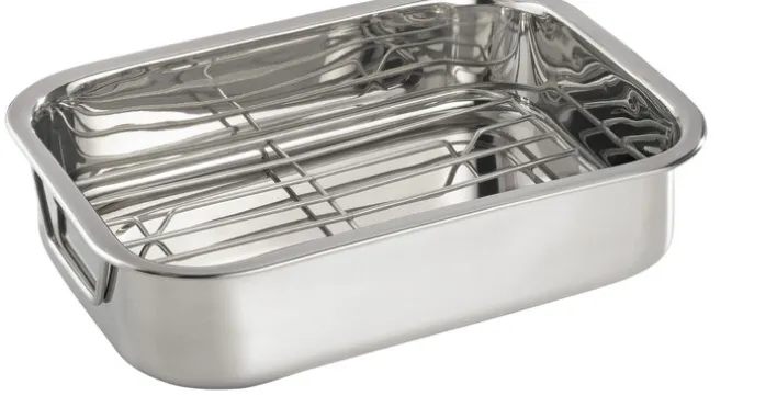 Da der Bräter rechteckig designt ist, nimmt er im Mobiliar der Küche nur wenig Platz in Anspruch. Aufgrund seines schlanken Formats lässt er sich mit anderen Küchenutensilien stapeln. Der Bräter ist aus hochwertigem Edelstahl hergestellt, sodass die Wärme hervorragend geleitet werden kann. Weiterhin lässt sich der Bräter nach Gebrauch absolut leicht reinigen.