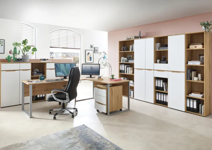 Das Regal bietet ausreichend Stauraum mit vier Einlegeböden und fünf offenen Fächern, die vielseitige Aufbewahrungsmöglichkeiten für Bücher, Ordner oder Dekorationsgegenstände bieten. Die klare Linienführung und das schlichte Design unterstreichen den modernen Stil des Regals, das sich nahtlos in verschiedene Einrichtungsstile integrieren lässt. Mit einem Gewicht von 31 kg steht das Regal stabil und sicher, während es gleichzeitig leicht genug ist, um bei Bedarf umgestellt zu werden.