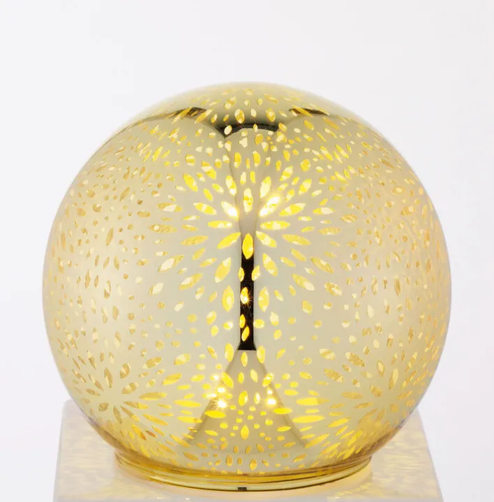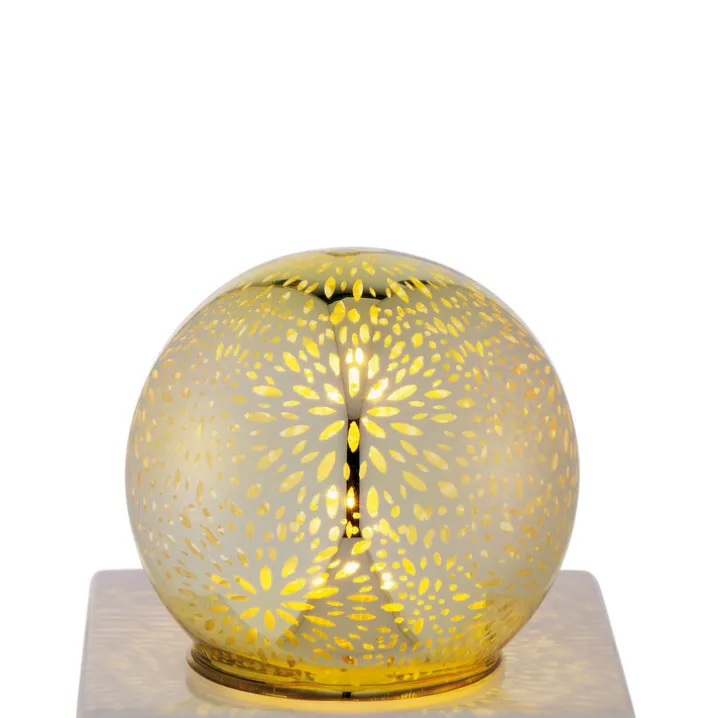 Wer sagt, dass man zu Weihnachten Kugeln in den Christbaum hängen muss? casaNOVA zeigt, dass goldene Kugeln, die mit LEDs bestückt sind, auch ganz ohne Baum Weihnachtsstimmung verbreiten können. Die Glaskugeln sind mit einem unregelmäßigen Muster in goldfarbigem Druck versehen, das bei eingeschaltetem Licht Sternenzauber auf die Unterlage malt. Besonders charmant wirkt das natürlich auf einer weißen oder hellgrauen Tischplatte, auf Fensterbänken oder hellen Ablagen.