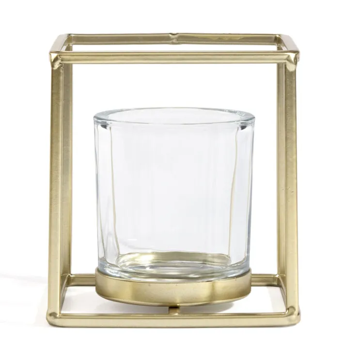 Das goldfarbige casaNOVA Windlicht hat eine Höhe von 10 cm. Mit seinem eleganten Look dient das Tischlicht auf Sideboard, Tisch und im Bücherregal als Blickfang.