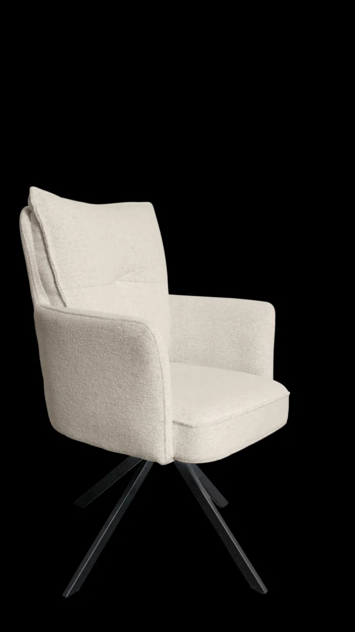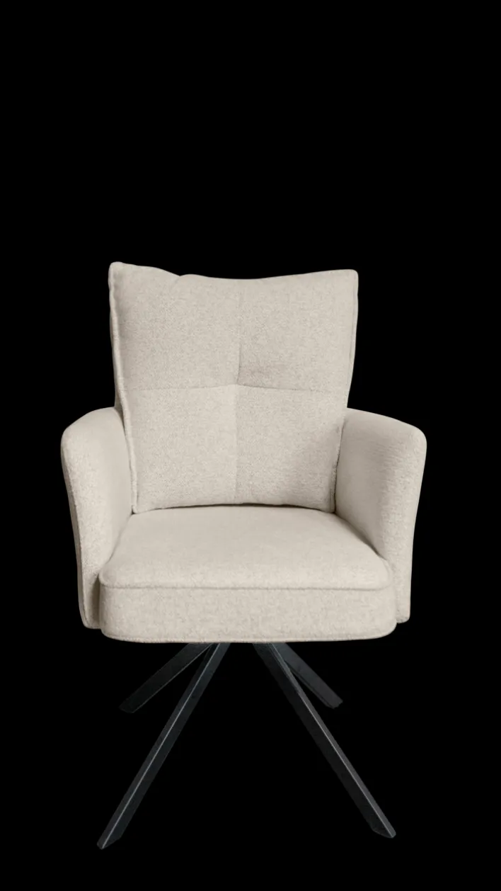Besonders hervorzuheben ist das drehbare 360°-Design, das Flexibilität und Bewegungsfreiheit ermöglicht. Die festen Armlehnen bieten zusätzlichen Komfort. Das pulverbeschichtete Vierfußgestell in Schwarz sorgt für Stabilität und einen modernen Look. Dieser Armlehnstuhl ist die ideale Wahl für alle, die Wert auf Stil und Funktionalität legen.