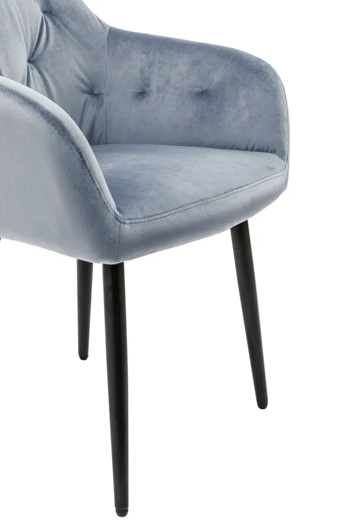 Der CASAVANTI Armlehnstuhl kombiniert eine gemütlich gepolsterte Sitzschale mit einem modernen Metallgestell. Die schwarzen Beine stellen einen aparten Kontrast zum weichen Textilbezug aus hellgrauem Samt dar. Die schicke Sitzgelegenheit passt in Wohn- oder Speisezimmer und kann bei Bedarf auch im Büro oder im Schlafzimmer Verwendung finden. Wer will, kann auch mehrere Exemplare in verschiedenen Farbtönen miteinander kombinieren.