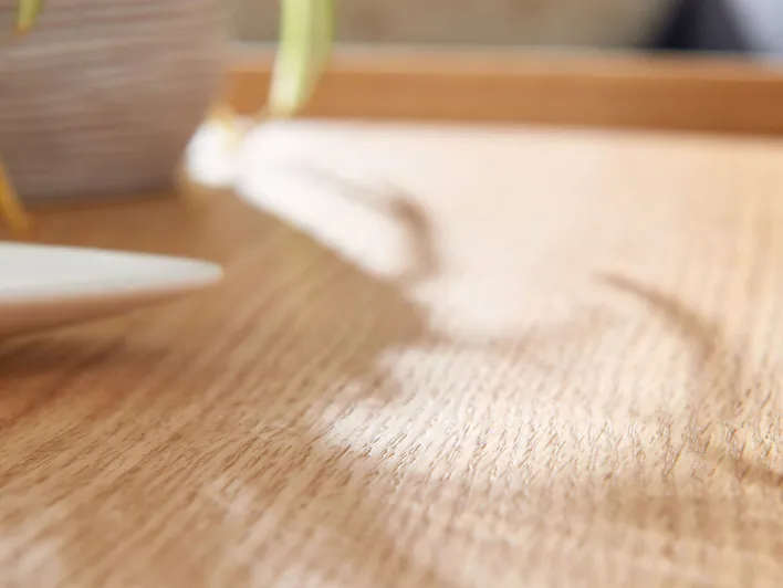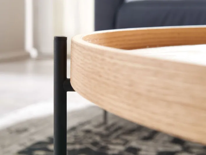 Der CASAVANTI Couchtisch ist rund und zeigt einen Durchmesser von 78 cm. Die Höhe liegt bei 40 cm. Er präsentiert sich mit einem pulverbeschichteten Metallgestell in Schwarz sowie einer furnierten Tischplatte in Eiche. Der Tisch ist belastbar bis 8 kg.