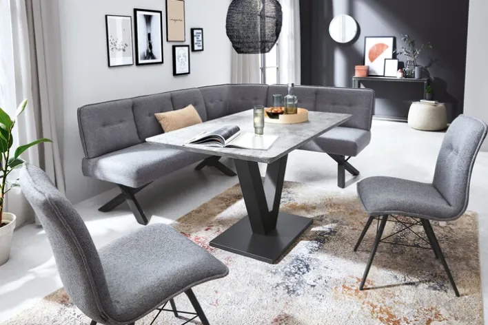 Die CASAVANTI Eckbank MIA in Hellgrau ist eine gemütliche und platzsparende Alternative zu Esszimmerstühlen. Sie bietet einen erstklassigen Sitzkomfort und besticht mit einer topmodernen Optik.