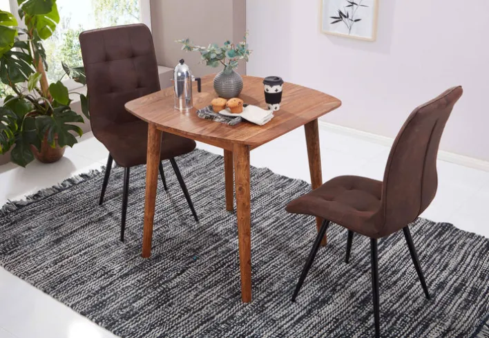 Der braune CASAVANTI Esstisch 80 x 80 x 78 cm ist ein stilvolles und praktisches Möbelstück, das mit seiner wunderschönen Maserung den Ess- oder Küchenbereich, aber auch Wohnräume elegant ergänzt. Hergestellt aus edlem Rosenholz und mit einem braunen Finish versehen, verleiht er jedem Raum eine warme und einladende Atmosphäre.
