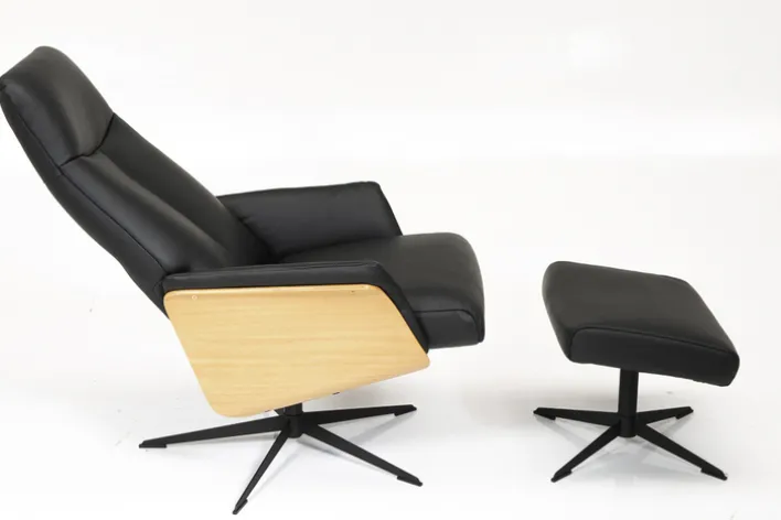 Der 2-teilige CASAVANTI Ledersessel mit Hocker SOLEDA in Schwarz/Eiche erstrahlt im modernen Skandi-Look. Neben seinem stilvollen Design überzeugt der Relaxsessel mit Funktionen, die zur Entspannung beitragen.
