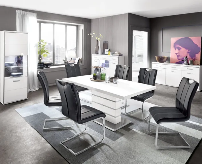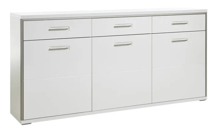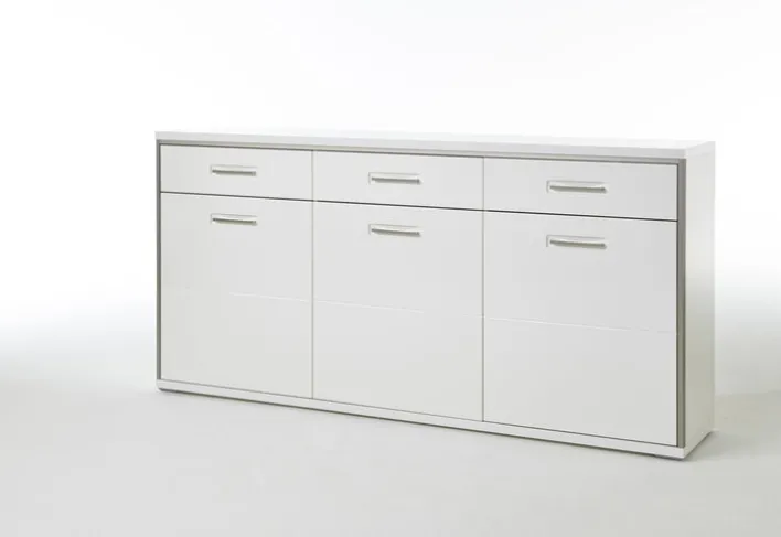 Gradliniges Design mit klarer Linienführung verleiht dem Sideboard eine zeitlos attraktive Optik. Durch die Farbgebung in strahlendem Weiß Hochglanz ist die Kommode mühelos mit vorhandenem Interieur kombinierbar. Sie können das große Angebot an Stauraum im Wohnzimmer ebenso gut nutzen wie im Esszimmer.