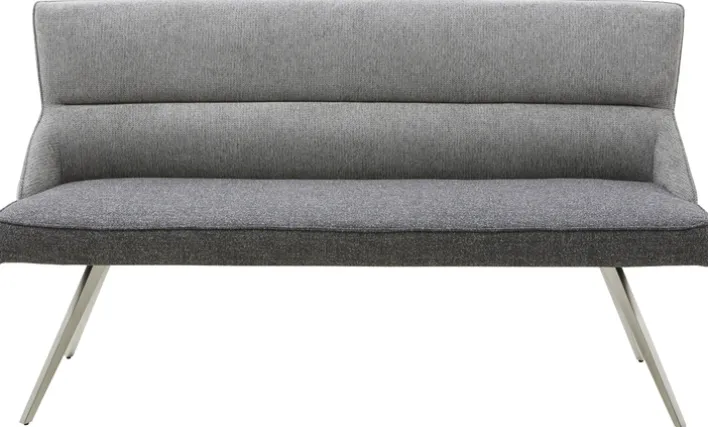 Die CASAVANTI Sitzbank TAIGA ist 160 cm breit, 92 cm hoch und 63 cm tief. Der Bezug ist aus grauem Textilmaterial. Das Vierfußgestell ist aus gebürstetem Edelstahl.