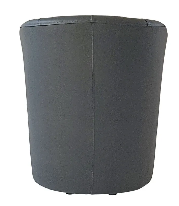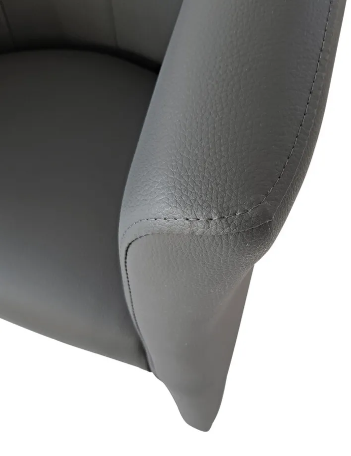 Dieser Cocktailsessel BLAINE zeigt graues Kunstleder. Die Sitzhöhe des Möbels beträgt 45 cm. Seine Breite liegt bei 67 cm, die Höhe beträgt 76 cm und die Tiefe 59 cm.