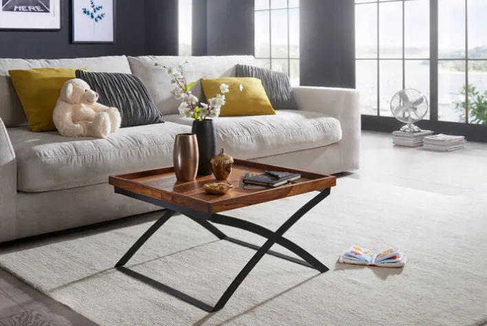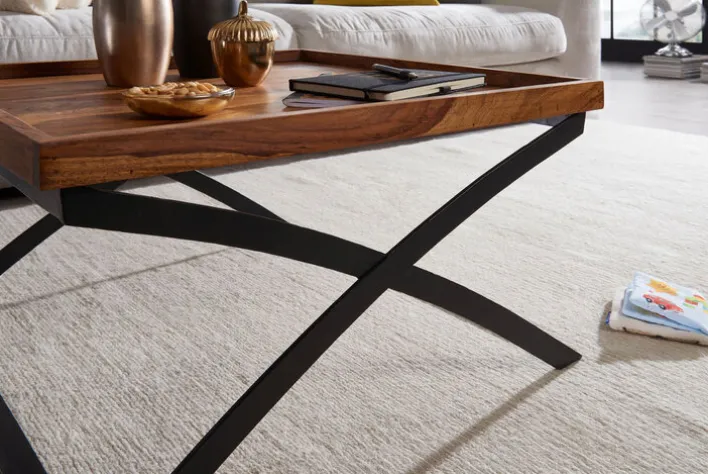 Die lebhafte Maserung des Holzes fällt sofort ins Auge. Da es sich um Massivholz handelt, ist jeder Couchtisch ein Unikat. Auch der eigenwillige Schwung des Gestells ist etwas Besonderes. Hervorzuheben ist die Tatsache, dass es sich teilweise um reine Handarbeit handelt. Auch ist der Tisch nur für Innenräume gedacht. Das schont seine intensiven Farben. Er passt hervorragend zu verschiedenen Ledersofas sowie zu hellen oder dunklen Stoffsofas.