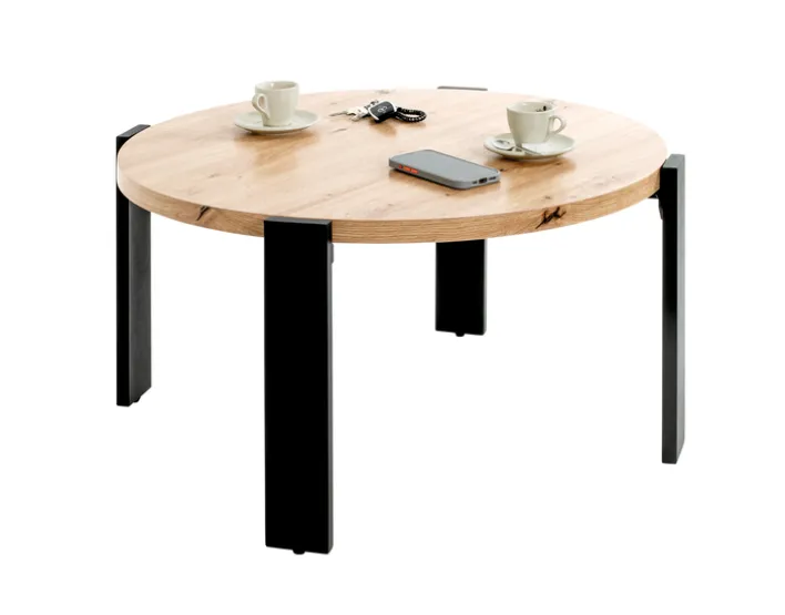 Der moderne Tisch für den Wohnbereich wiegt 11,50 Kilogramm und kann mit einem Gewicht von 35 Kilogramm belastet werden. Daher eignet sich das Modell auch für den Nachmittagskaffee oder einen Snack am TV-Abend. Die runde Tischplatte aus mitteldichter Faserplatte hat eine Plattenstärke von 30 Millimetern. Der Tisch ist für den Innenbereich konzipiert worden und kann sowohl einzeln als in Kombination mit Beistelltischen arrangiert werden.