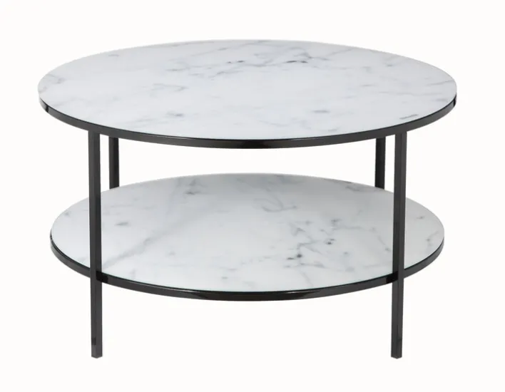 Der runde, 80 x 80 cm große Couchtisch in Schwarz / Weiß richtet sich an alle, die das Besondere lieben und zu schätzen wissen. Mit seiner edlen Marmor-Optik strahlt er eine absolut zeitlose Eleganz aus.