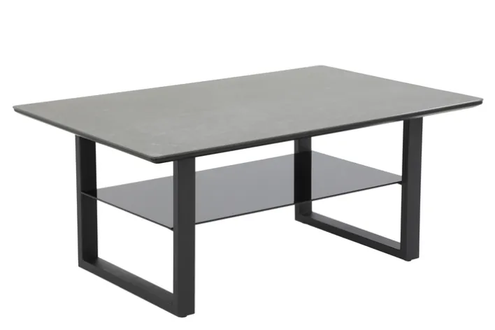 Die Tischplatte vereint eine edle Steinstruktur mit pflegeleichten Eigenschaften. Ein pulverbeschichtetes Kufengestell aus Metall in Anthrazit sorgt für Stabilität und verleiht dem Couchtisch ARNE eine klare, geometrische Silhouette. Die schwarz durchgefärbte Glasablage unterhalb der Platte bietet zusätzlichen Stauraum und hält die Tischfläche frei für Getränke, Snacks oder Dekoration. Der Tisch passt ideal vor Sofa oder Sessel und ergänzt moderne Wohnkonzepte mit zeitloser Eleganz und praktischer Funktionalität.