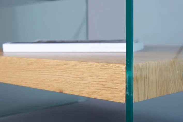 Material: GlasHolznachbildungGlasart: SicherheitsglasHolzwerkstoffart: mitteldichte Faserplatte (MDF)