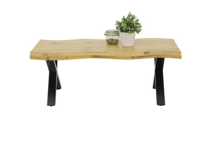 Getragen wird die Platte von einem stabilen X-Gestell aus pulverbeschichtetem Metall in Schwarz. Es sorgt für einen sicheren Stand und verleiht dem Couchtisch LEWIS eine markante Linienführung. Der Tisch verfügt über ausreichend Platz für Snacks, Getränke oder Dekoration am Sofa. Er bringt eine natürliche Ausstrahlung und moderne Akzente harmonisch zusammen und ist perfekt für ein charakterstarkes Ambiente im rustikalen, klassischen oder modernen Wohnzimmer.