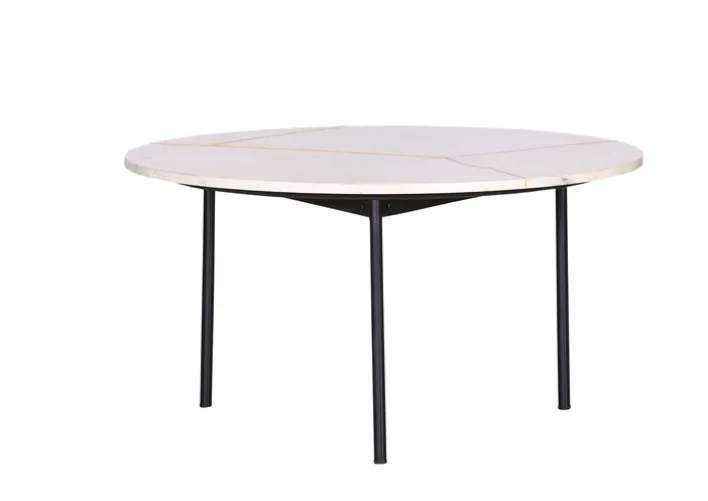 Der Couchtisch der Serie MILANO vereint modernes Design mit hochwertigen Materialien. Die runde Tischplatte aus weißem Marmor verleiht dem Tisch eine elegante Ausstrahlung und bietet eine robuste Oberfläche. Die feinen Maserungen des Marmors sorgen für eine natürliche und stilvolle Optik, die sich harmonisch in verschiedene Wohnstile einfügt.