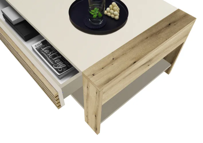 Der Couchtisch der Serie Tomar vereint modernes Design mit praktischer Funktionalität.