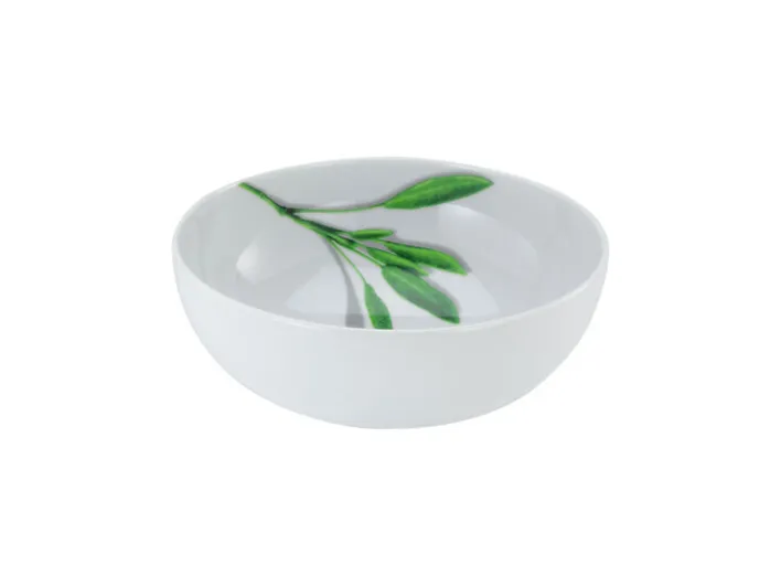 Die Schale ist 8 cm hoch. Das strahlende Weiß bildet einen attraktiven Kontrast zu dem Grün des Salbeistängels, der täuschend echt auf der Innenseite abgebildet ist. Die Schale eignet sich beispielsweise für Suppen und Soßen. Sie kann aber auch mit einem Eintopf oder einem herzhaften Pastagericht gefüllt werden. Das schöne Geschirr ist in weiteren Ausführungen erhältlich, sowohl in Bezug auf die Form als auch im Design. So lässt sich alles sehr harmonisch miteinander verbinden und man bekommt Appetit.