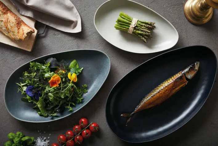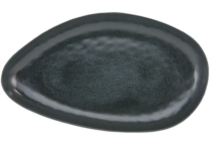 Diese ovale Platte XXL in Schwarz ist organisch geformt und hat die Maße 43 x 25 x 4,3 cm. Er ist Teil der Kollektion PIETRA von CreaTable Porzellan Haus.