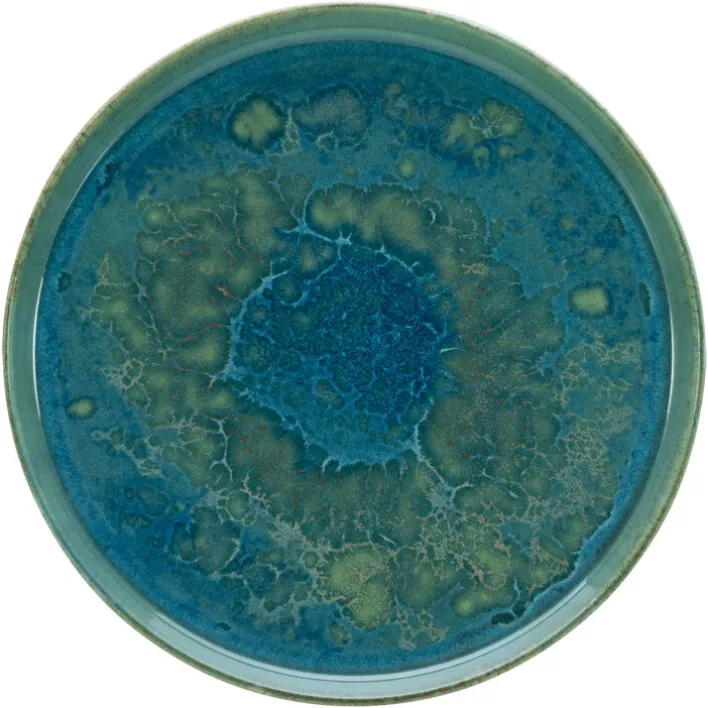 Der Anblick der 6 Speiseteller aus dem CreaTable Set YUKI weckt Assoziationen an die blau-grünen Tiefen der Ozeane. Die außergewöhnliche Farbgebung kommt auf einem weißen Tischtuch oder einer hellen Tischoberfläche besonders gut zur Geltung. Jeder der Teller hat einen Durchmesser von 28 cm und ist somit für das Mittag- oder Abendessen geeignet.