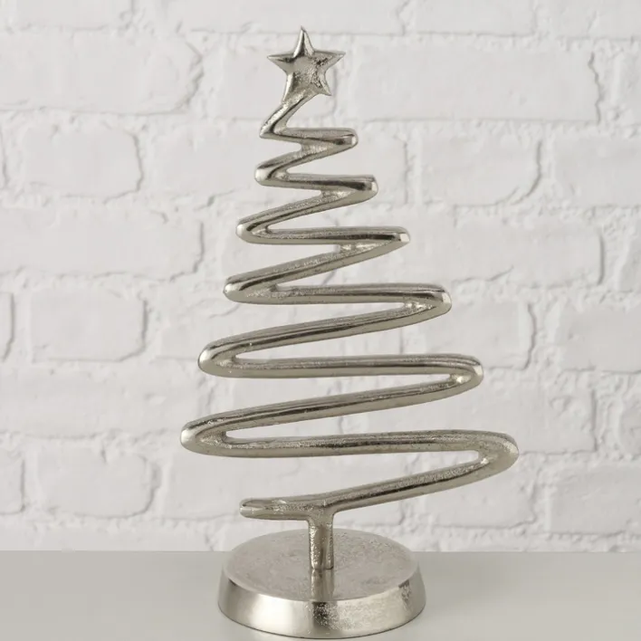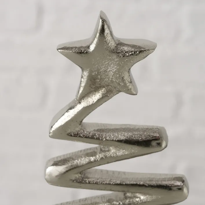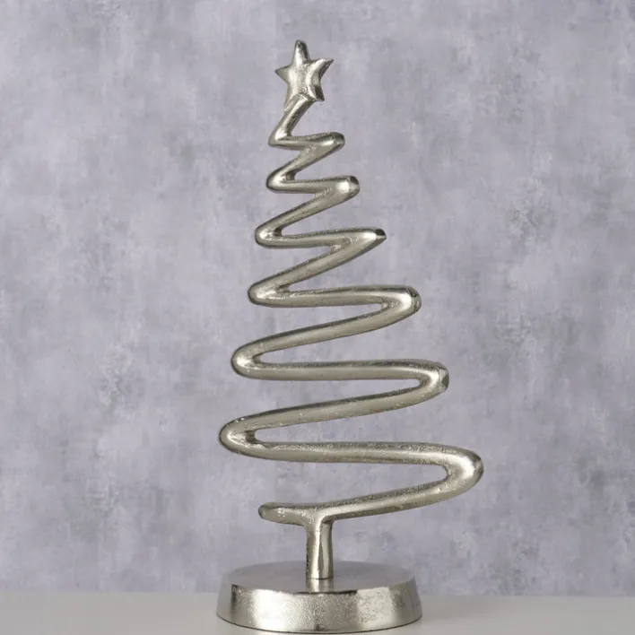 Dieses dekorative Objekt aus der Serie FIRO ist ein stilvolles Weihnachtsdeko-Element, das durch seine moderne und minimalistische Form besticht. Gefertigt aus hochwertigem Aluminium, präsentiert sich das Deko-Objekt in einer eleganten Alu-/Nickelfarbe, die durch eine vernickelte Oberflächenbeschichtung veredelt wird. Die spiralförmige Gestaltung, die an einen Weihnachtsbaum erinnert, wird von einem kleinen Stern an der Spitze gekrönt, was dem Design eine festliche Note verleiht.
