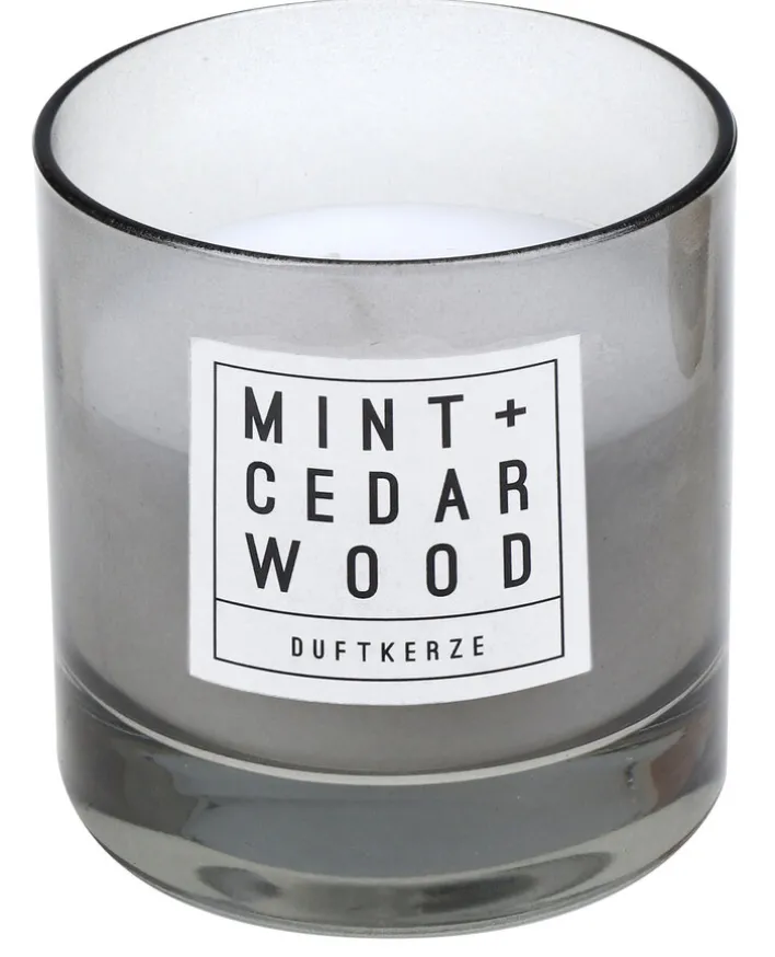Die feine Duftkerze COLOUR mit der Duftkomposition Mint & Cedarwood ist ideal für den modern oder klassisch eingerichteten Wohnbereich. Das angenehm duftende Wachs der Kerze ist in ein graufarbiges Glas gegossen. Das konische Glas ist vielseitig mit verschiedenen Dekoaccessoires kombinierbar. Auf dem Couchtisch oder dem Wohnzimmertisch kommt die Kerze besonders gut zur Geltung. Die Duftkerze sorgt beim Abbrennen für einen angenehmen Duft und eine gemütliche Stimmung.